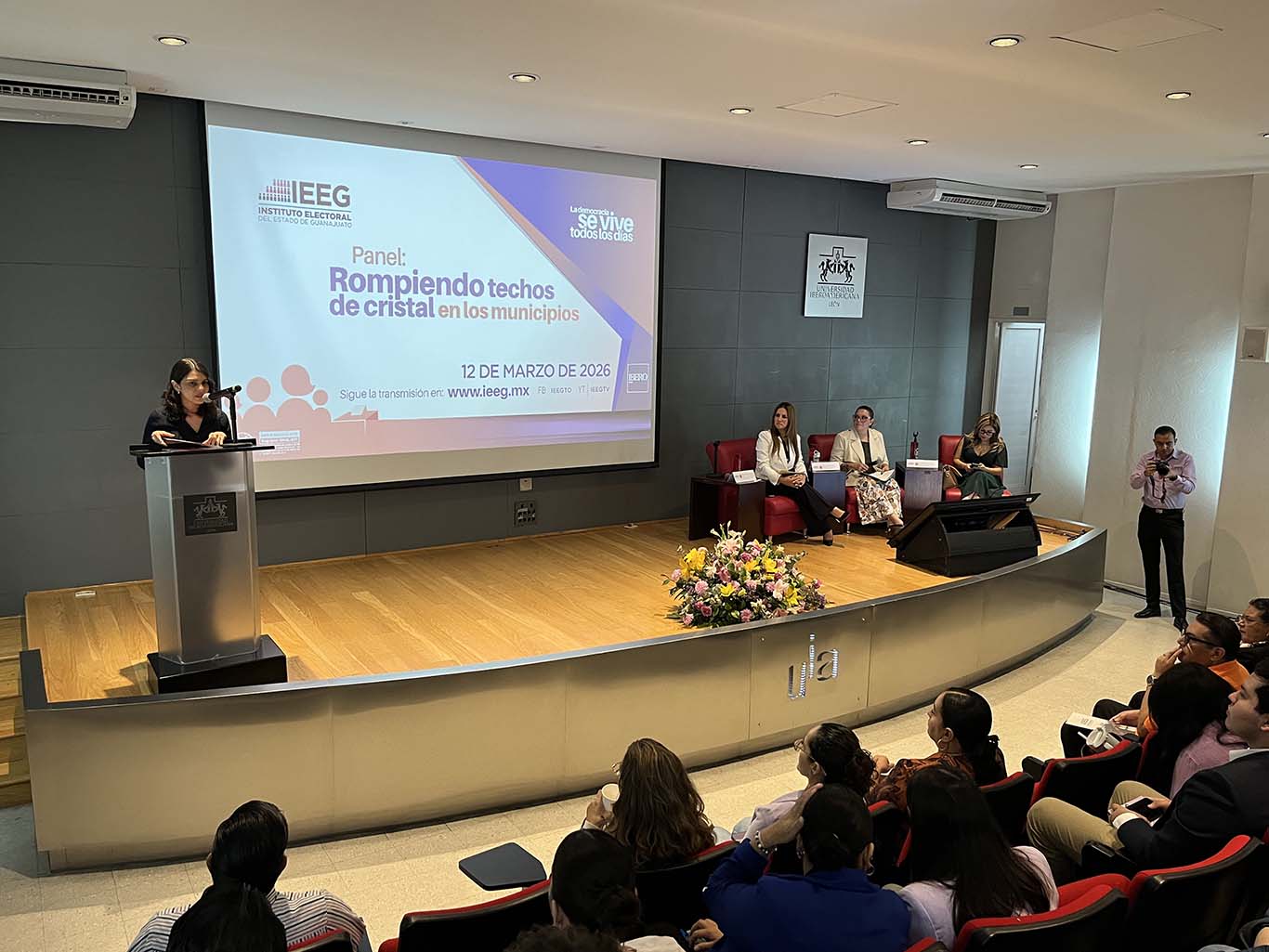En el marco de la conmemoración del Día Internacional de la Mujer, el 12 de marzo se llevó a cabo en el Auditorio Francisco Xavier, S.J., de la Universidad Iberoamericana León el panel “Rompiendo los techos de cristal en los municipios”, organizado por el Instituto Electoral del Estado de Guanajuato (IEEG) en colaboración con la universidad.