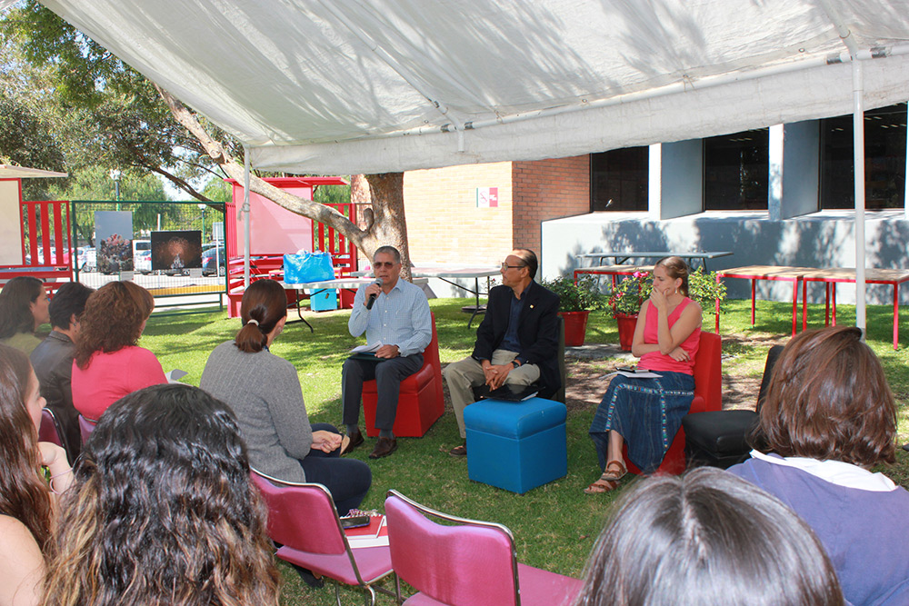El panel estuvo compuesto por Martín Tovar Hurtado, Coordinador de la Maestría de Arquitectura del Paisaje; Sara María Herrerías, Colaboradora de AUGE Autogestión y Educación Comunitaria A.C. en el polígono de pobreza de las Joyas, Brenda Hurtado, Colaboradora del Banco de Alimentos a cargo del Programa Sustenta, y como moderador el Mtro. Antonio Cruz Pérez, coordinador de la Maestría en Medio Ambiente con Enfoque en Sustentabilidad.