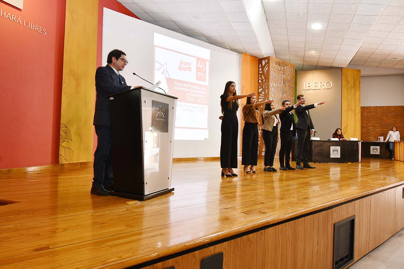 Alumnos y alumnas de nuestra Ibero León están listos y listas para representar a la comunidad universitaria a través de las Sociedades Estudiantiles. En ceremonia protocolar, el rector Mtro. Luis Alfonso González Valencia S.J., tomó protesta a las 11 sociedades electas y al nuevo Consejo de Sociedades Estudiantiles (COSES) para el periodo 2024-2025.