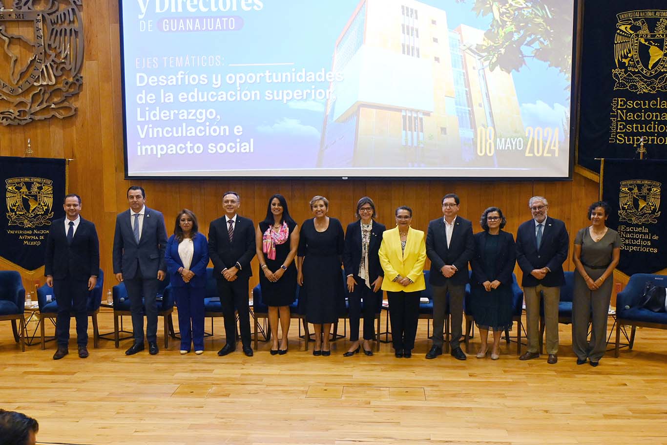 Como moderadoras participaron la Dra. Laura Susana Acosta Torres, directora de la ENES Unidad León; y la Dra. Sofía Ayala Rodríguez, exrectora de la Universidad Tecnológica de León. Se abordaron tres ejes temáticos: Desafíos y oportunidades de la educación superior, Liderazgo, y Vinculación e impacto social.