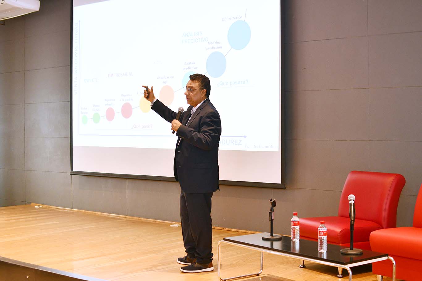 Manifestó la relevancia de la analítica de datos en las empresas con el fin de tomar decisiones basadas en información y no en corazonadas: “Hay mucho que podemos hacer con los datos, porque los datos están en todos lados: En la empresa, en los teléfonos, en las redes sociales, en muchos lugares. Hay mucho campo de acción”.