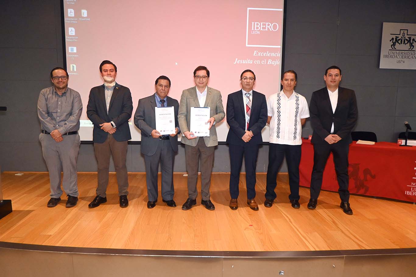 En ceremonia protocolar, el Dr. Jorge Alberto Gaytán García, vocal ejecutivo del Comité de Ciencia Sociales y Administrativas de los CIEES, entregó al rector de la Ibero León, Mtro. Luis Alfonso González Valencia S.J., las constancias de la reacreditación.