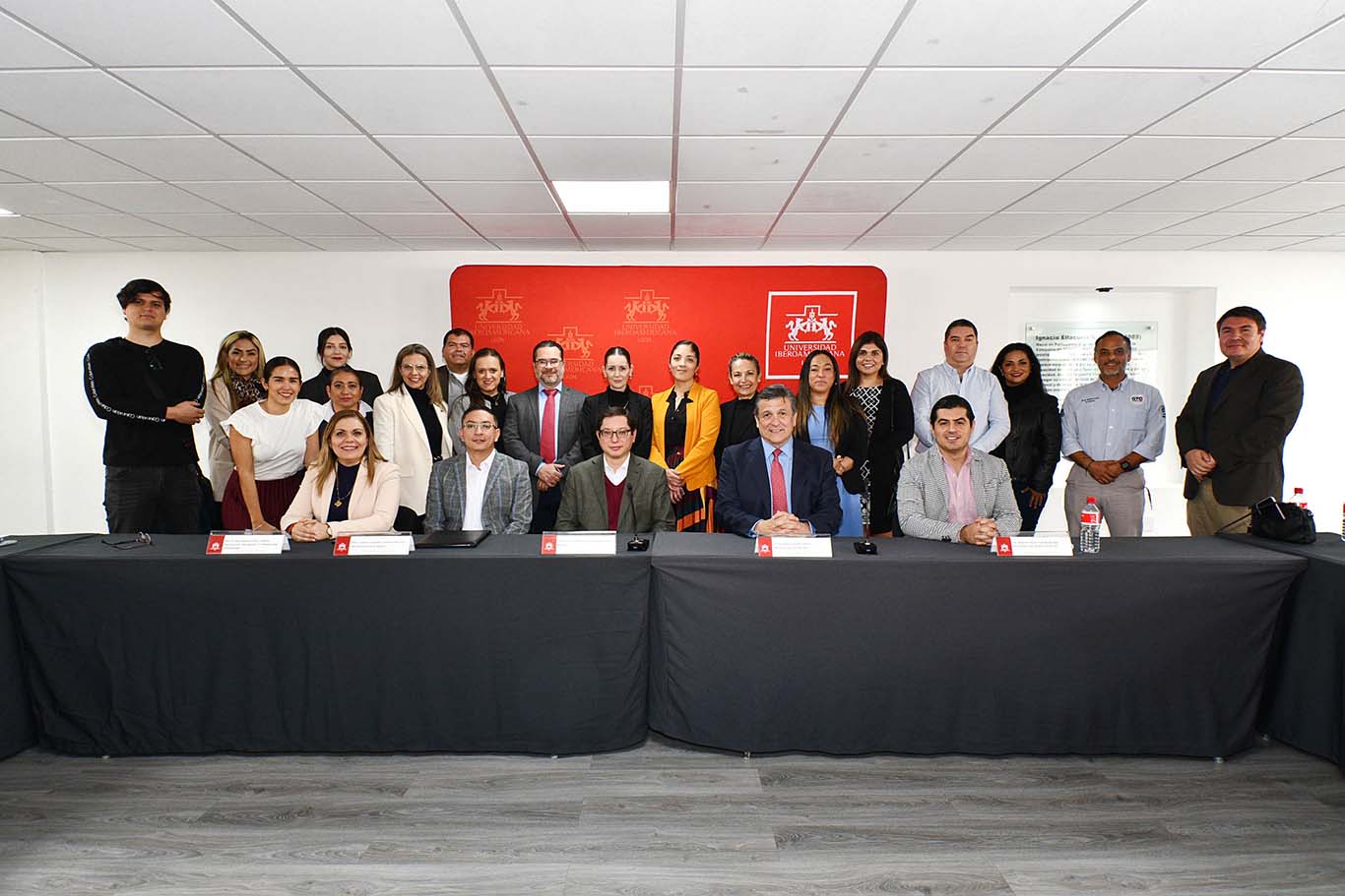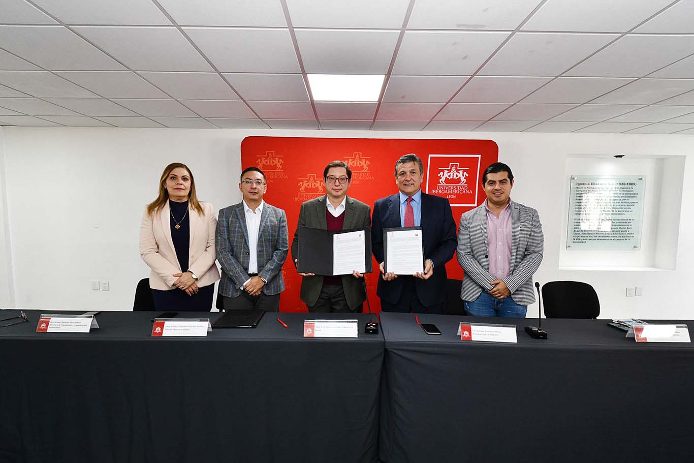 En la ceremonia de firma contamos con la participación del presidente de CLYM Gto., Lic. Enrique González Muñoz; y del secretario general, Lic. Roberto Óscar Calvillo Rendón. Por parte de la Ibero León, estuvieron el Mtro. Luis Alfonso González Valencia S.J., rector; Mtro. Gustavo Alejandro González Ramírez, director general académico; y Dra. Ivonne Jannette Pérez Wilson, directora de Vinculación y Comunicación Institucional.