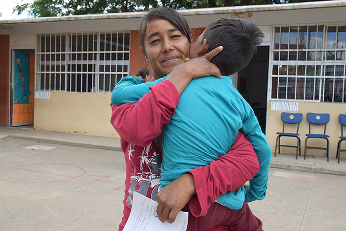 “A veces no tenemos el recurso para llevarlos a otros lados y aquí vienen varios doctores y nos pueden decir qué es lo que ellos tienen (...) Tengo que acudir más que nada al hospital que es donde lo atienden, al pediátrico, pero a veces no tiene uno ni para llevarlos”, manifiesta Gregoria Amaro Álvarez mientras sostiene en sus brazos a uno de sus tres hijos que padece retraso psicomotriz, hipotiroidismo y epilepsia.