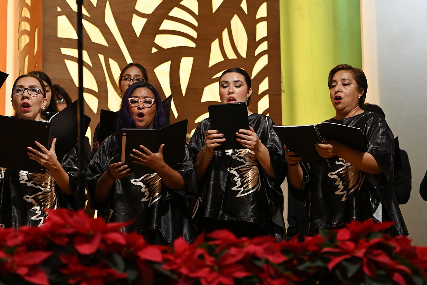 Con la dirección de Jaime Castro Pineda; y Judith Campos Galeana, pianista y asistente de dirección, el Coro del Teatro del Bicentenario presentó un programa navideño con piezas de John Rutter, Blas Galindo, Jaime Prats, Doraval Caymmi, Atahualpa Yupanqui, Jonathan Rathbone, Johan Strauss II, Jesús Elizarrarás, Antonio Vivaldi y Georg Friederich Händel, entre otros.
