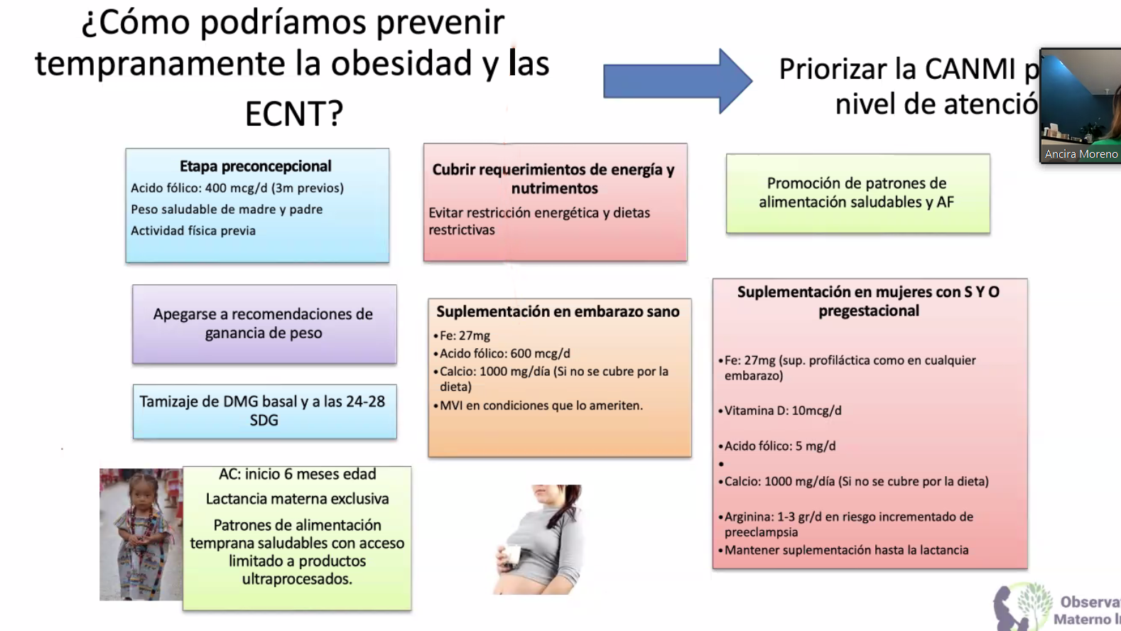 Realizar prevención temprana implicaría no solo intervenir durante la niñez, sino desde la preconcepción y durante el embarazo. “Es ahí donde realmente podríamos incidir en una disminución de los factores de riesgo que sabemos que promueven el desarrollo de obesidad y enfermedades crónicas”.