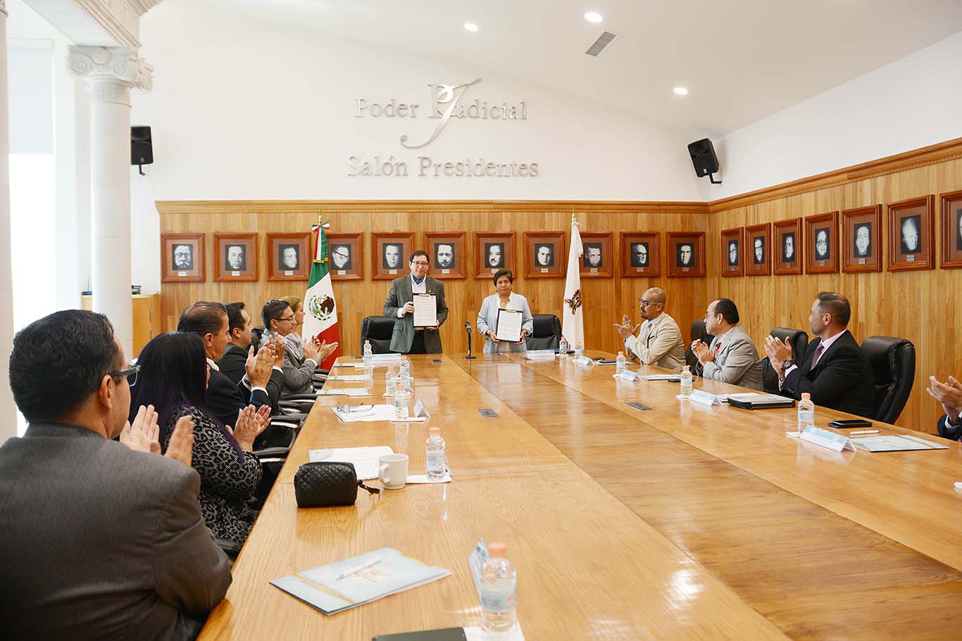 La magistrada también se refirió a la pertinencia de la colaboración: “Las y los justiciables demandan profesionales en permanente actualización, capaces de responder a los retos que se presentan en el constante devenir, personas que desempeñándose en estricto apego a los principios legales y éticos, contribuyan desde su esfera competencial al perfeccionamiento de la sociedad”.
