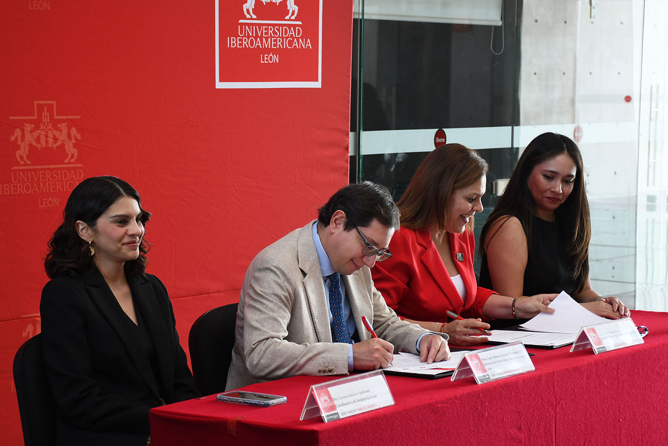 El convenio se suscribió el viernes 12 de septiembre en la Unidad de Innovación, Aprendizaje y Competitividad (UIAC) de la Ibero León. Presidieron la firma, por parte del Instituto, la doctora Pérez Wilson y la directora de análisis, articulación y formación con perspectiva de género, Mtra. Viridiana Estrada Pacheco. Por parte de la Ibero León, el rector, Mtro. Luis Alfonso González Valencia S. J.; y la coordinadora de Incidencia Social, Dra. Lorena Jiménez Quiñones.