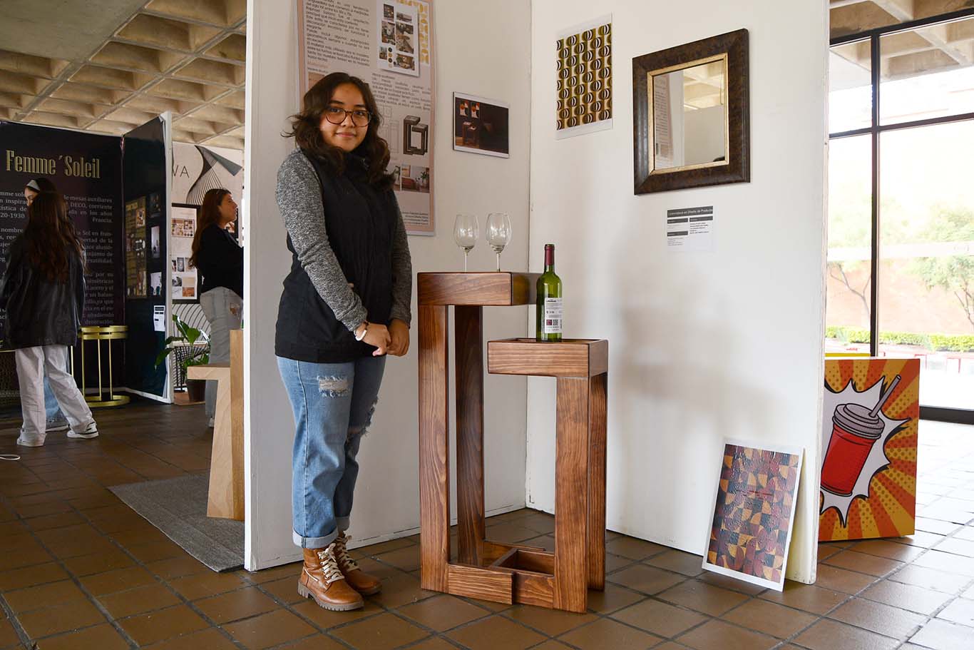 “Está inspirada en el diseño Industrial, nos inspiramos en las mesas de las fábricas. La parte de abajo son diferentes partes de maderas para que se vea más natural el diseño. Usamos herrería, vidrio y madera. Se me hizo muy padre cómo quedó, estuvo padre” – Dana Margaret Ramírez Ramos.