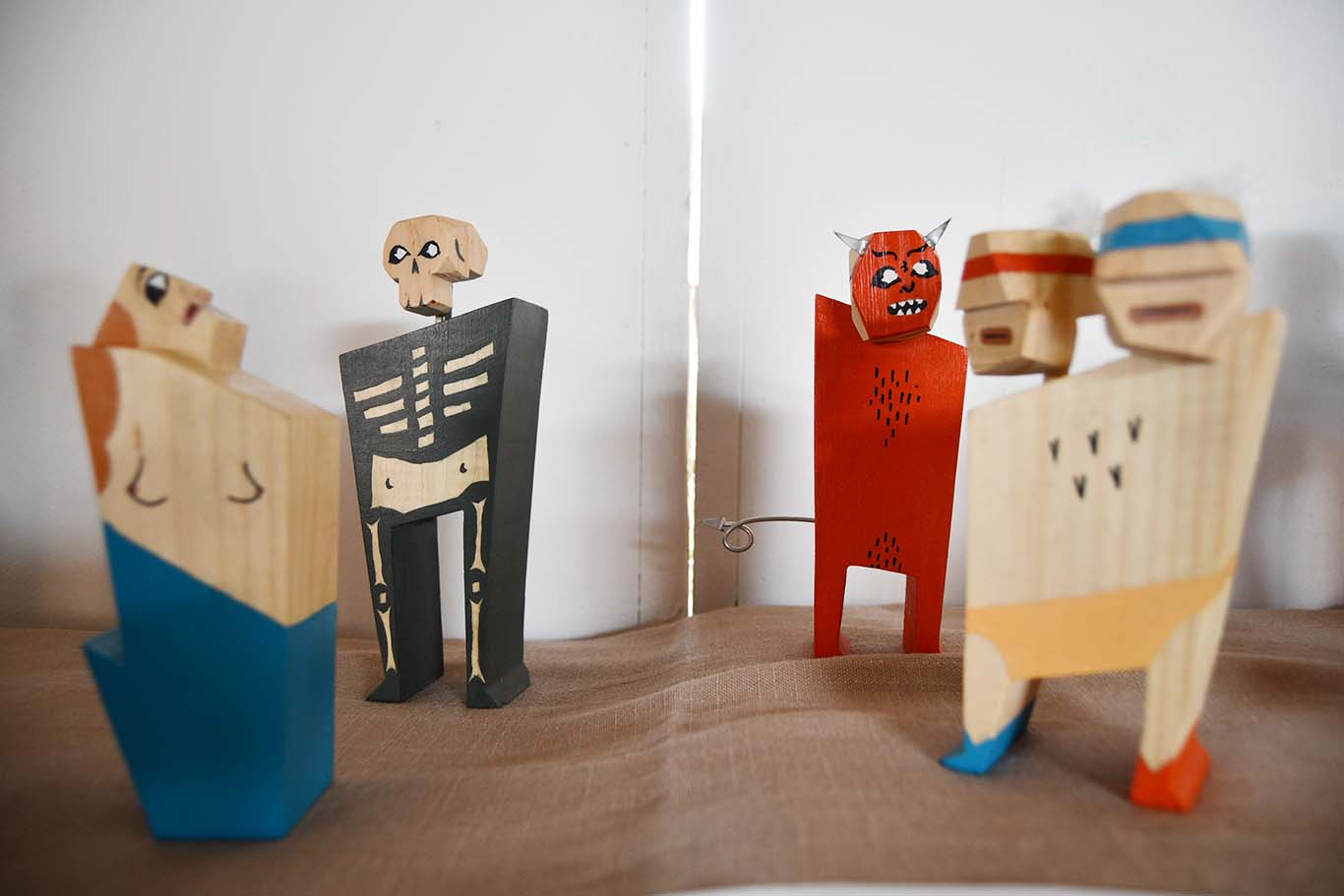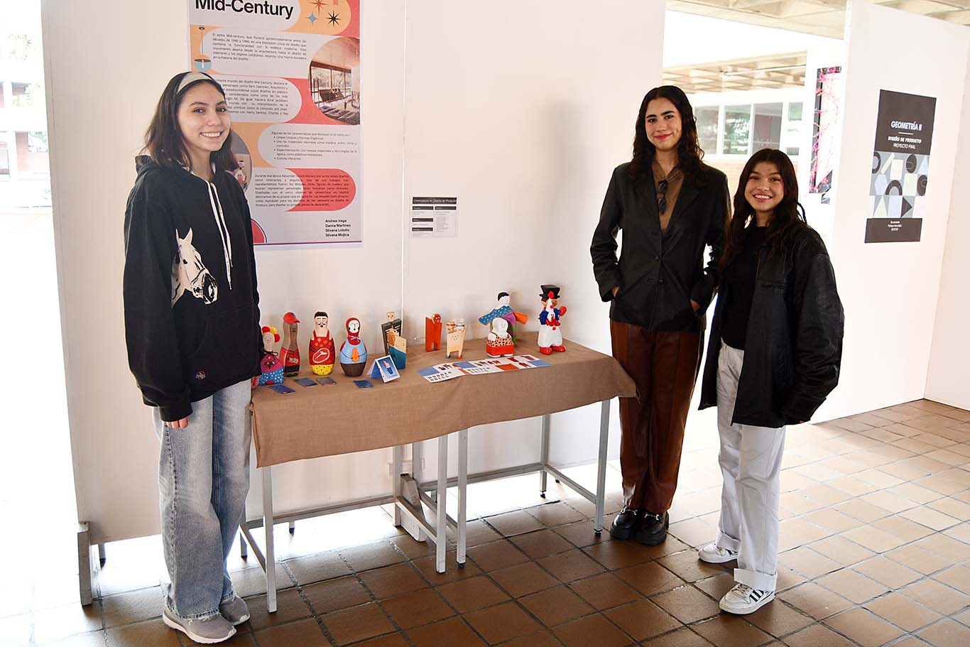 “El proyecto consistió en hacer un juego de muñecos decorativos para el hogar basado en los años 50, específicamente en el diseñador Alexander Girard. Cada equipo tenía su propio tema, el primer equipo fue el mercado, el segundo la lotería mexicana y el tercero el circo. Cada quien hacía su propia adaptación y con características de personajes; de hecho, todos tienen personalidad y las diferentes técnicas que se usaron fue el oasis con Ready Mix y madera. Yo lo hice de madera y me gustó mucho el acabado, darle la personalidad a los personajes porque más allá de cómo se ven estéticamente como que tiene alma. Cuando tú tienes la pieza puedes explicarle a la gente lo que significa, lo que representa y la abstracción que hiciste” – Silvana Mojica Ríos.