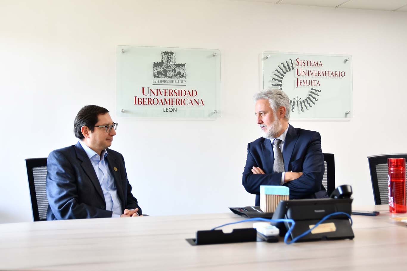 En su visita a la Ibero León, el Embajador de Rumania, Excmo. Sr. Marius Lazurca, firmó en Rectoría el libro de invitadas e invitados distinguidos.