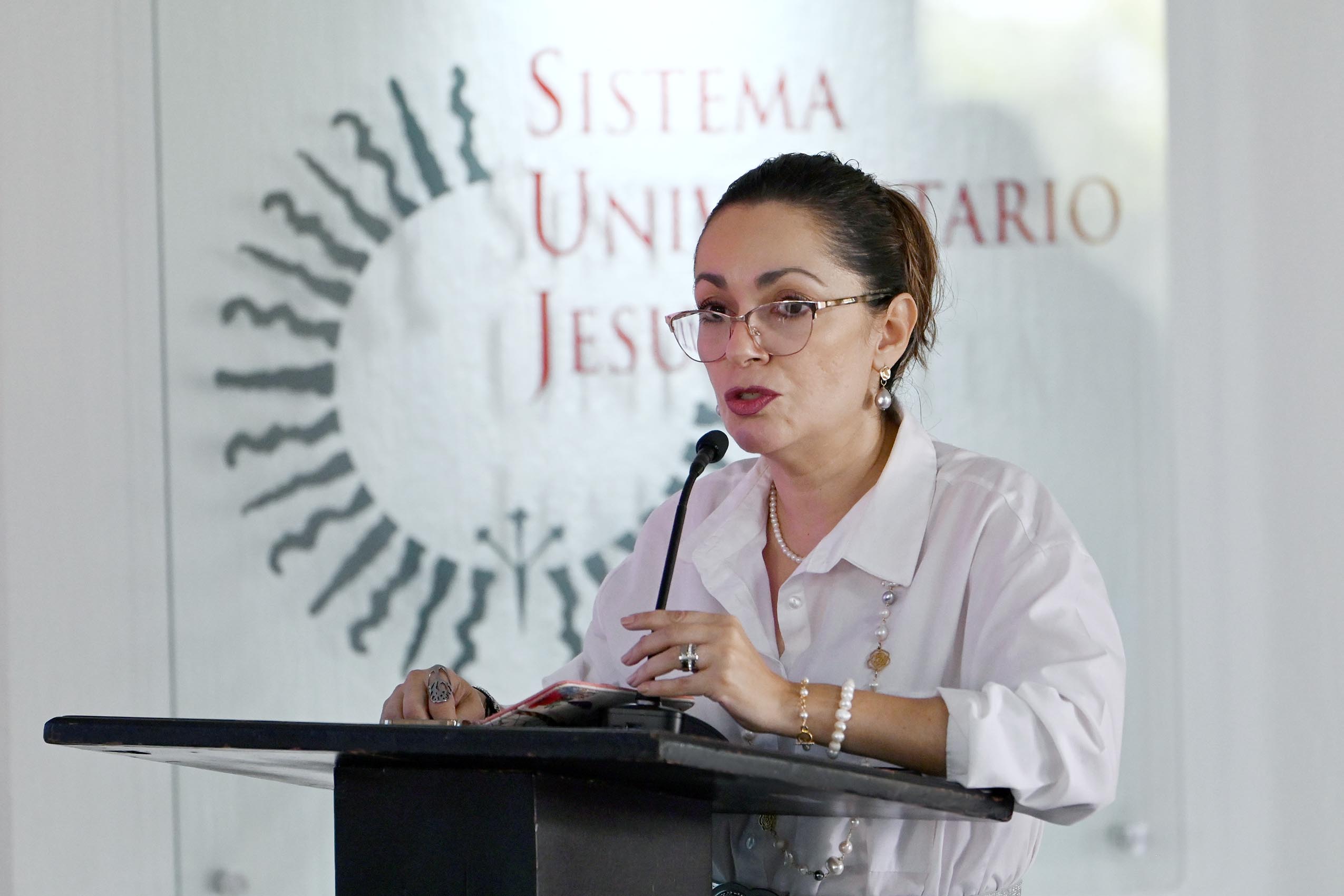 Previo a la conferencia, la directora del Departamento de Ciencias Económico Administrativas, Mtra. Diana Fabiola Pantoja Mercado, dirigió un mensaje a las y los estudiantes de la Licenciatura en Marketing y Publicidad de la Ibero León. Aseguró que celebrar el Día del Mercadólogo y la Mercadóloga suma a la formación de identidad entre las y los profesionistas del gremio.