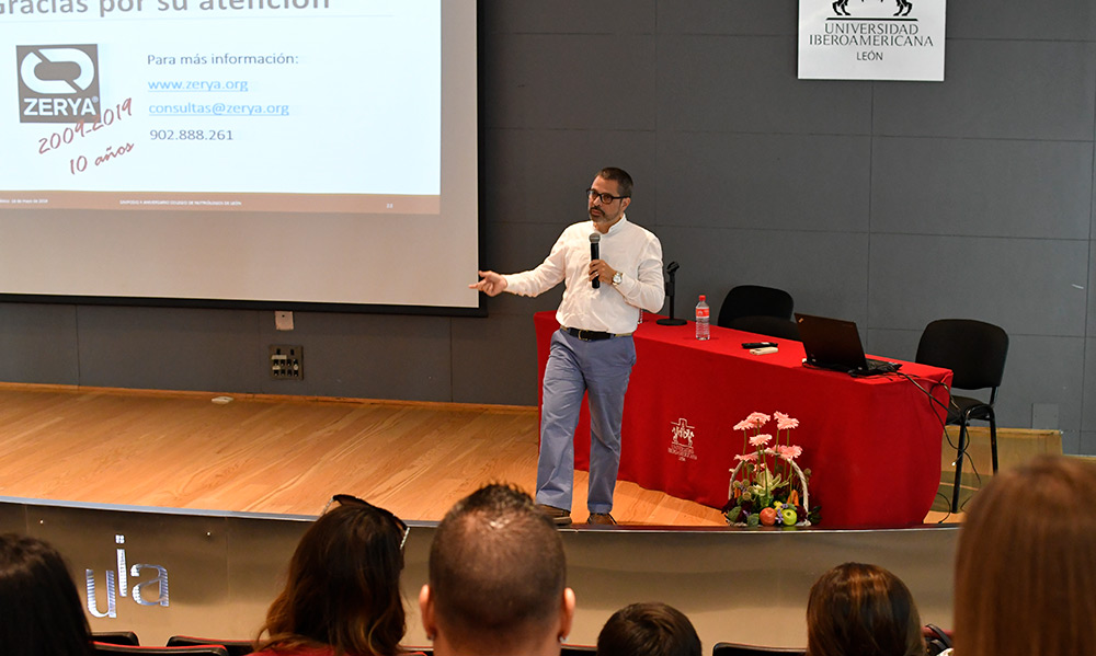 La conferencia se enmarcó en la celebración del Décimo Aniversario del Colegio de Nutriólogos A.C. del cual nuestra universidad fue sede el 17 y 18 de mayo 2019.