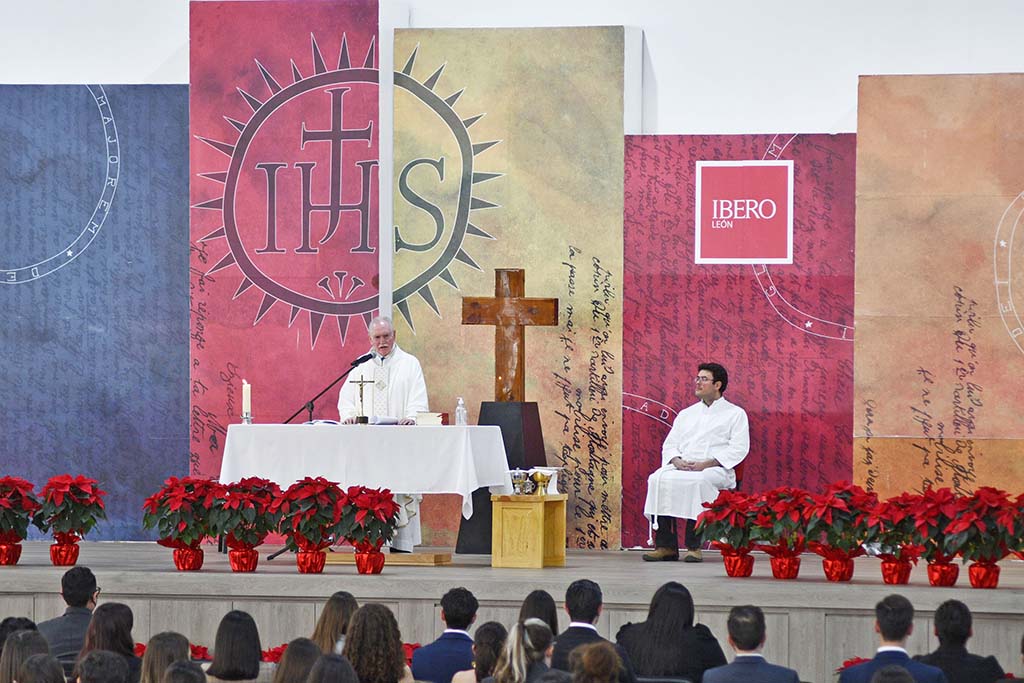 Previo al acto académico, se realizó una ceremonia eucarística, oficiada por el Dr. Rafael Ignacio Rodríguez Jiménez, de la Compañía de Jesús, asesor de Rectoría.