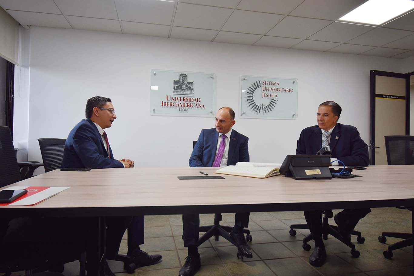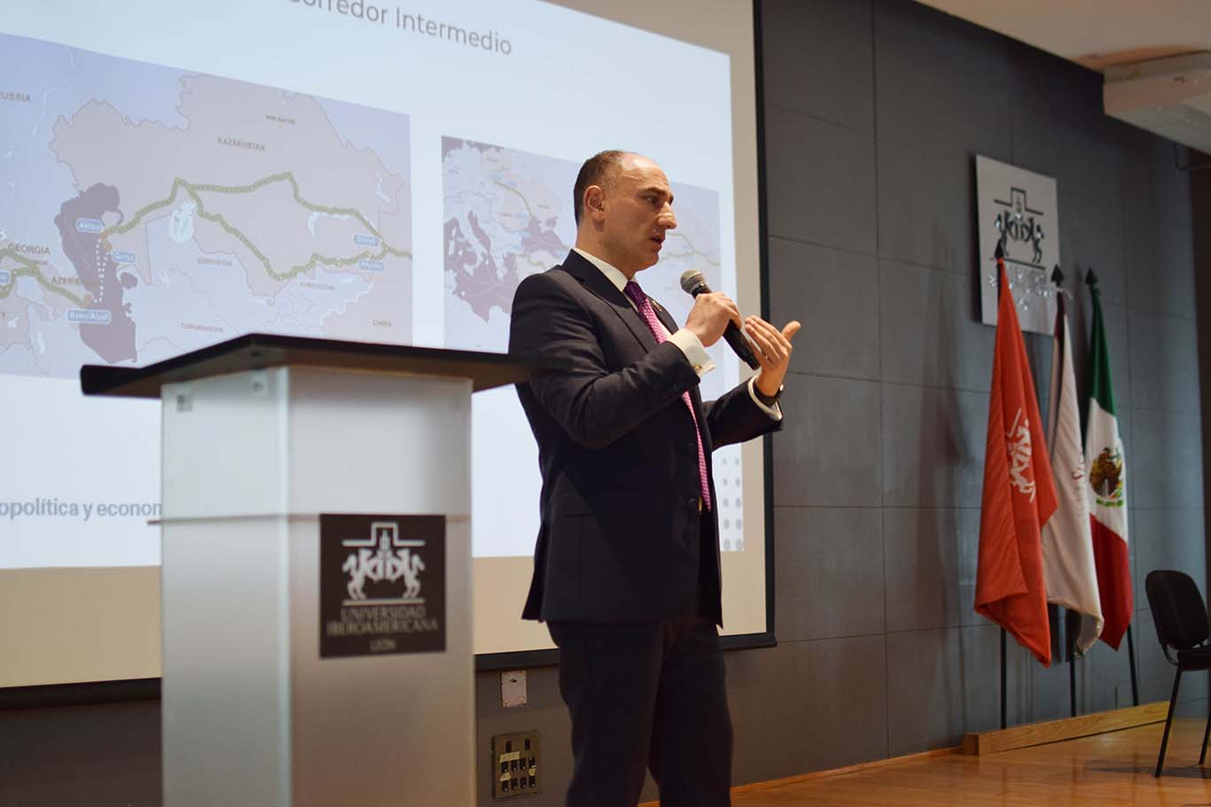 Nuestra Universidad Iberoamericana León recibió la visita del Embajador de la República de Azerbaiyán, Excmo. Sr. Mammad Talibov, quien impartió la conferencia ‘Azerbaiyán: Creando una nueva realidad en la región; economía, estabilidad, seguridad y paz’ ante estudiantes de la licenciatura en Relaciones Internacionales.