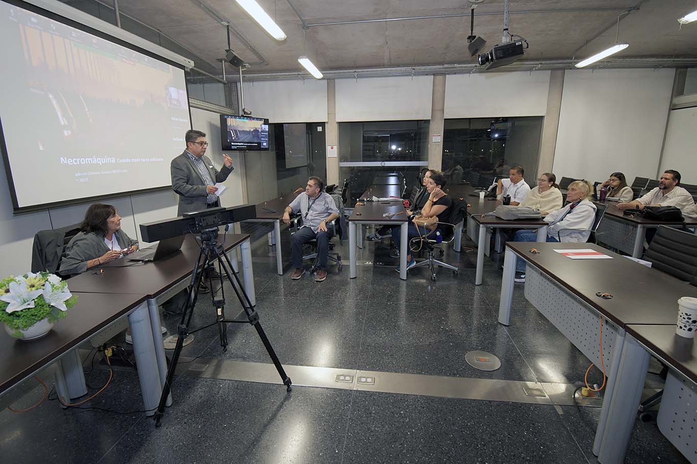 "Necromáquina es un concepto que acuño en diálogo con el pensador camerunés Achille Mbembe sobre su concepto de Necropolítica, pero que también se desprende de mi trabajo previo, hasta el 2012, donde usaba la noción de Narcomáquina, que la sigo usando, pero dejó de ser productiva teóricamente y metodológicamente porque la idea de Narcomáquina no era suficiente para explicar lo que estaba sucediendo, el aumento de las violencias”.