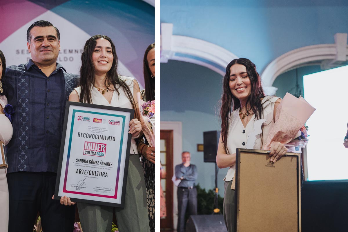 Sandra Gómez Álvarez, maestra en Diseño Fotográfico por la Universidad Iberoamericana León, recibió del Ayuntamiento de Colima el reconocimiento ‘Mujer Colima 2025’ por sus aportaciones en el ámbito del arte y la cultura.