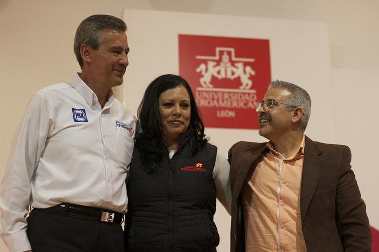 La Universidad Iberoamericana León, recibió a los candidatos a la alcaldía de León por los partidos: del PAN Héctor López Santillana, por Convergencia Ciudadana Ariel Rodríguez Vázquez y por el Partido del Trabajo Laura Hermosillo Espinoza, quienes expusieron sus principales propuestas de campaña a la comunidad Ibero León.