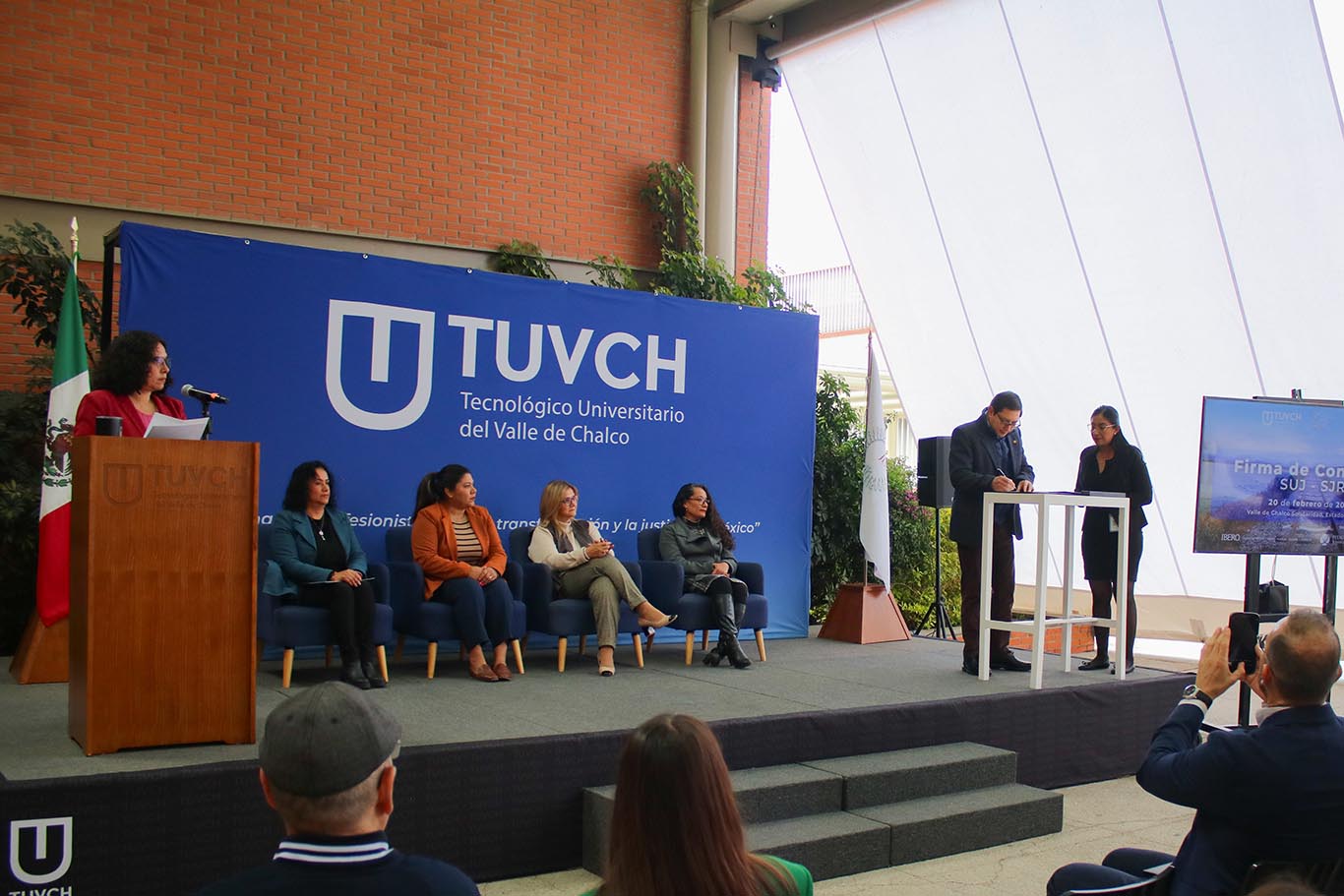 En el marco del Encuentro Anual de la Coordinación Sistémica con Migrantes (CSM), el Sistema Universitario Jesuita (SUJ) y el Servicio Jesuita a Refugiados (JRS) en México formalizaron un convenio de colaboración para fortalecer la defensa de los derechos humanos de las personas migrantes y refugiadas. La firma del acuerdo tuvo lugar en las instalaciones del Tecnológico Universitario del Valle de Chalco (TUVCH), sede del Encuentro, con la presencia de autoridades rectoras y directoras de las universidades del SUJ.