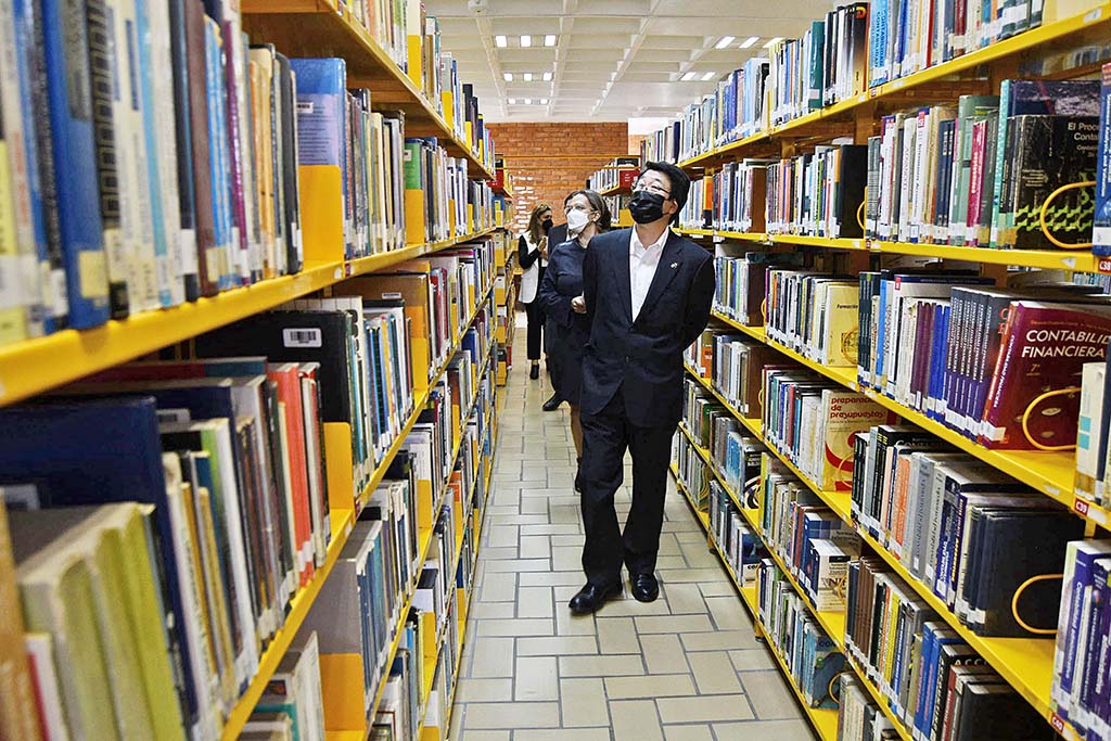 En un recorrido por nuestras instalaciones, el Cónsul conoció el nuevo Centro de Cultura, el Laboratorio de Industria 4.0, los laboratorios de Ingenierías y nuestra Biblioteca Jorge Vértiz Campero S.J. El diplomático firmó el libro de visitantes distinguidos.