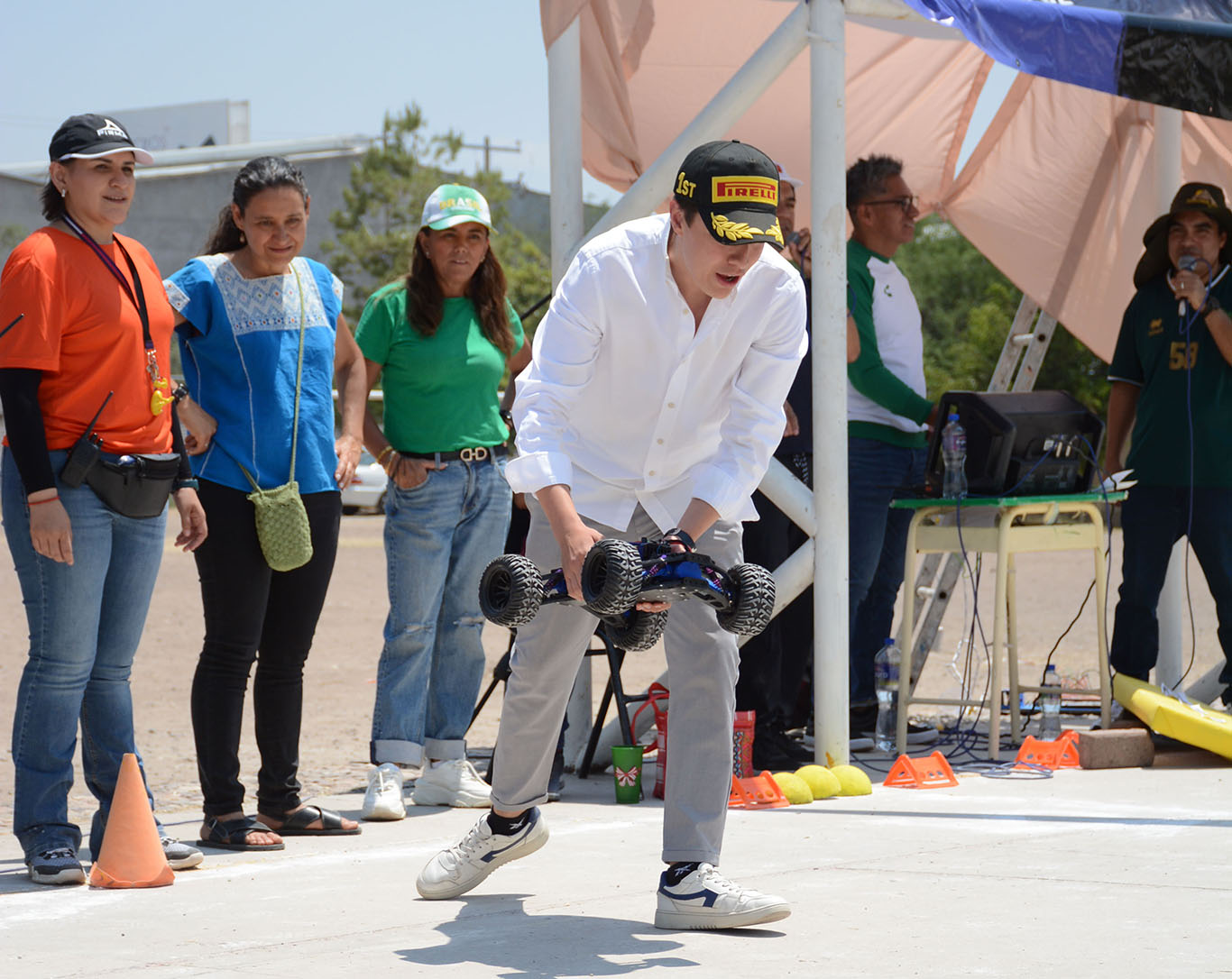 ¡A toda velocidad! En las canchas de la Escuela Secundaria Técnica 58, alumos de la Universidad Iberoamericana León de octavo semestre de Ingeniería Mecatrónica, pusieron a prueba el funcionamiento del auto de control remoto que realizaron con cuatro estudiantes de la Secundaria como proyecto de su Servicio Social II.