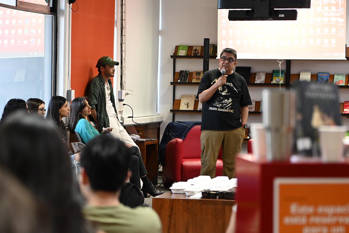 Aportó preguntas detonantes para abrir un espacio en el que las y los estudiantes discutieron por más de una hora acerca de géneros musicales, contracultura, expresiones artísticas, industrias culturales y creativas, identidad, ideologia, entre otros temas.