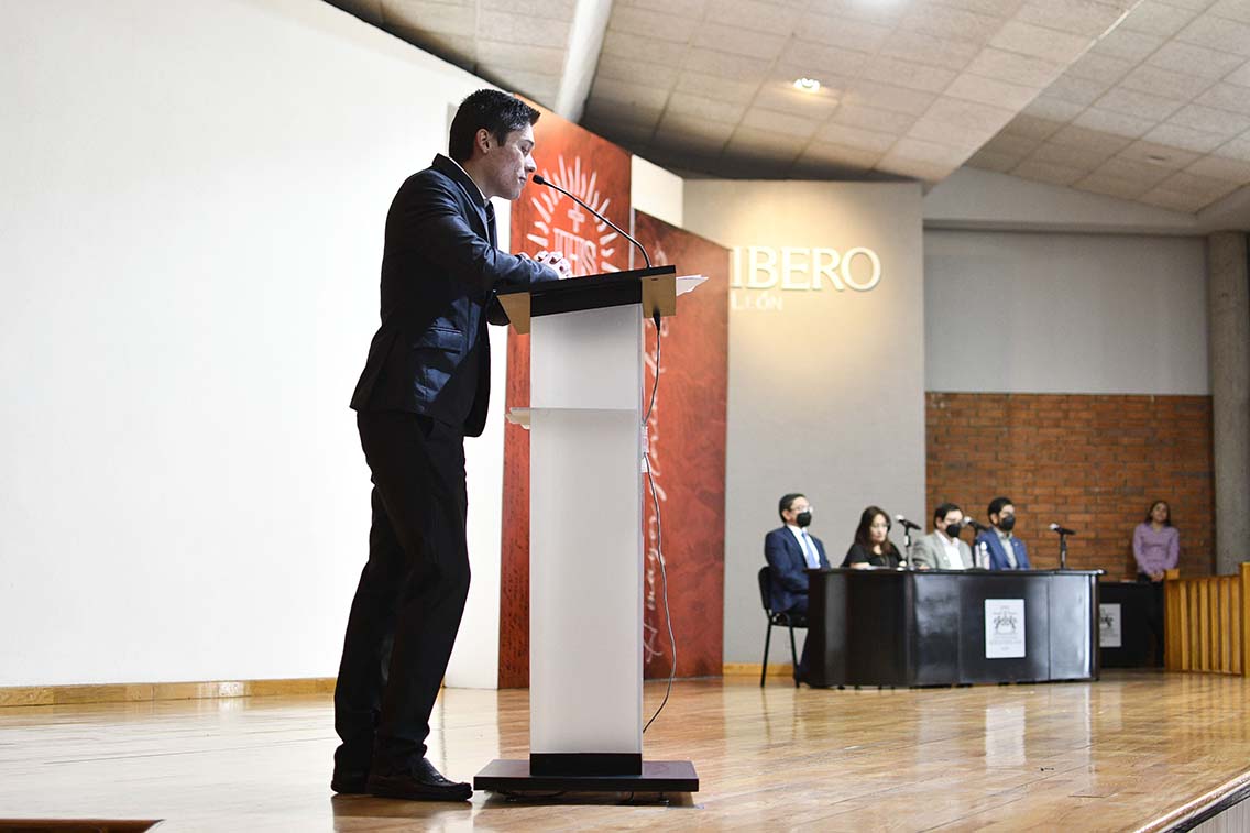 En la ceremonia participaron: el Mtro. Luis Alfonso González Valencia S.J., rector de la Ibero León; el Dr. Adrián Frausto Martín del Campo, director general de Integración Comunitaria; el Mtro. Gustavo Alejandro González Ramírez, director general Académico; y la Mtra. Guadalupe Fernández Aguilera, directora del Centro de Desarrollo Estudiantil.