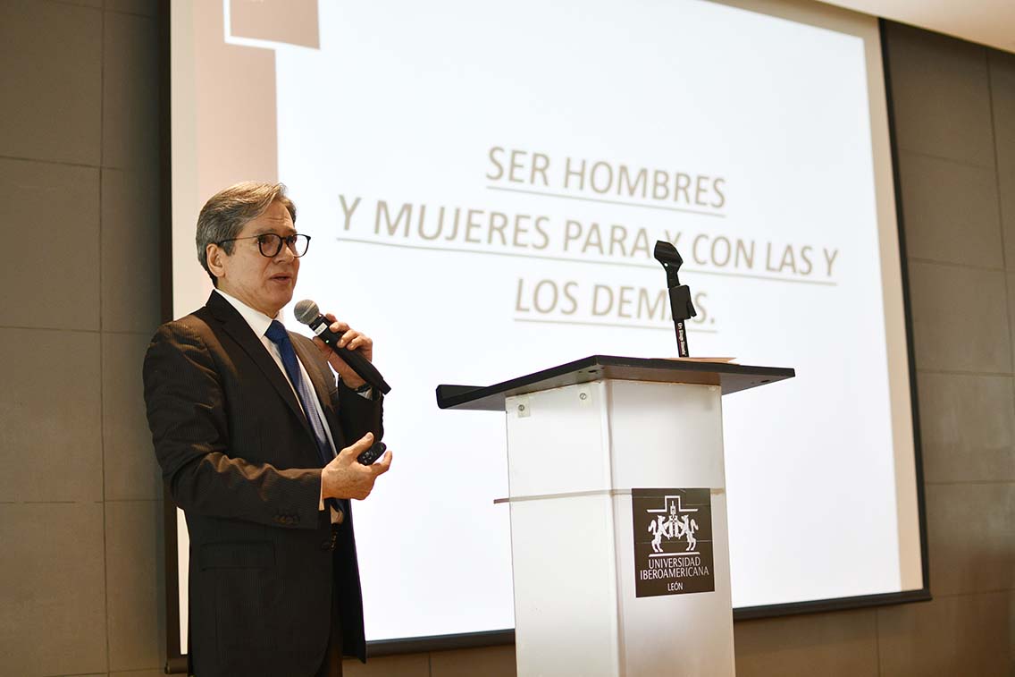 El director general de Integración Comunitaria, Dr. Adrián Frausto Martín del Campo, aseguró que la filosofía educativa de la Ibero León –como universidad confiada a la Compañía de Jesús– plantea la relación esencial del ser humano con el otro y la otra (con quienes conforma la sociedad).