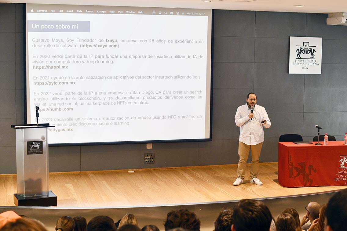La Universidad Iberoamericana León, a través de la Biblioteca Jorge Vértiz Campero S.J., Ibero León Virtual y Tecnologías para el Aprendizaje, llevó a cabo la conferencia ‘El contexto de la inteligencia artificial’, impartida por el Lic. Gustavo Moya Ortiz, director general de Ixaya, compañía especializada en investigación y desarrollo tecnológico.