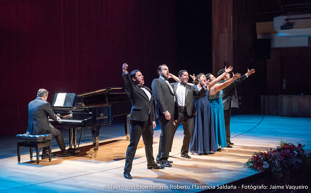 Arias, duetos, concertantes, estuvieron a cargo de: Akemi Endo, Ariadne Montijo, Luisa Mordel, Valeria Vázquez, Frida Portillo, Mariel Reyes-Gil, Édgar Villalva, Alejandro Luévanos, Tomás Castellanos, David Echeverría, Liliana Vanessa Salas, Edna Valles (éstas dos últimas invitadas especiales y coristas del Teatro Bicentenario). Acompañados magistralmente por los pianistas Mitchel Casas, Sergio Freeman, Rogelio Riojas-Nolasco, además de Jeanette Macari responsable de movimiento escénico. Todos bajo la coordinación ejecutiva de José Octavio Sosa y artística del mismo Riojas-Nolasco.
