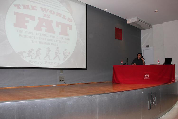La ponencia estuvo a cargo de la Maestra en Ciencias Ana Laura Valencia Gutiérrez, quien de inicio planteó que la obesidad “ es una compleja paradoja, una broma muy grande que nos esta haciendo la naturaleza “.