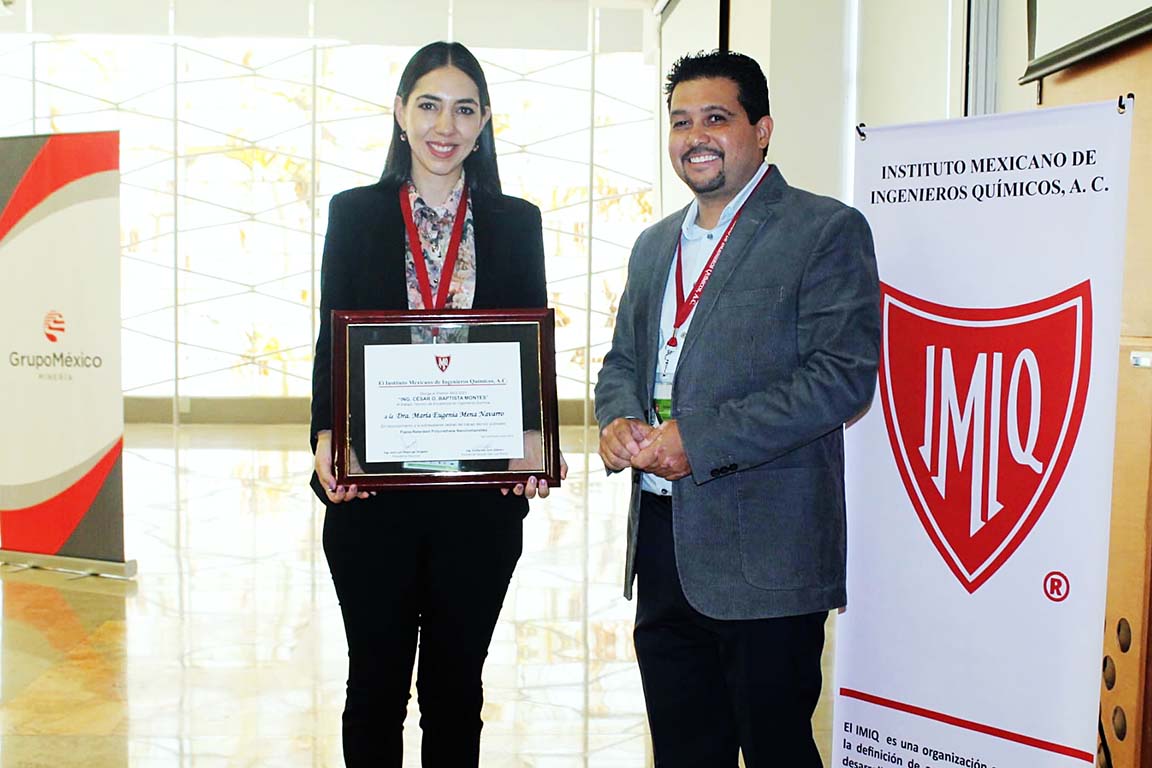 La académica e investigadora de la Universidad Iberoamericana León, Dra. María Eugenia Mena Navarro, fue merecedora del ‘Premio Ing. César O. Baptista Montes’ que otorga el Instituto Mexicano de Ingenieros Químicos, A. C. (IMIQ).