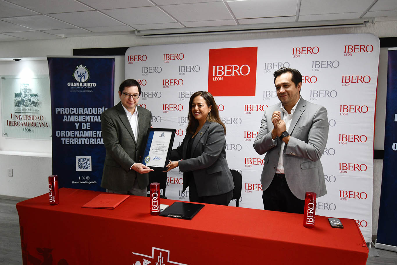 La ceremonia de entrega se realizó el 2 de septiembre en la Sala Ignacio Ellacuría, estuvo presidida por la Mtra. Karina Padilla Ávila, titular de la PAOT; el director general de Administración y Finanzas de la Ibero León, Dr. Luis Fernando Padilla Jiménez; y nuestro rector, Mtro. Luis Alfonso González Valencia, S.J.