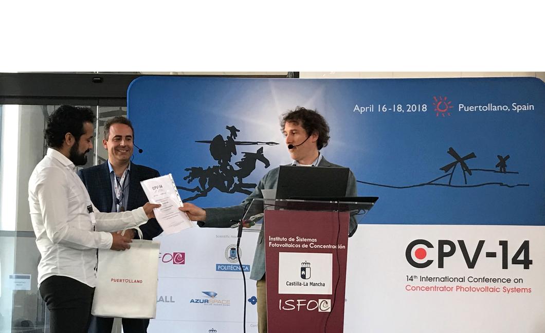 En abril pasado Juan Francisco Martínez fue invitado a participar en la edición número 14 de la Conferencia Internacional sobre Sistemas Fotovoltaicos Concentradoresrealizada en Puertollano España que reunió a investigadores de diversos países entre ellos Rusia, Estados Unidos y Canadá.