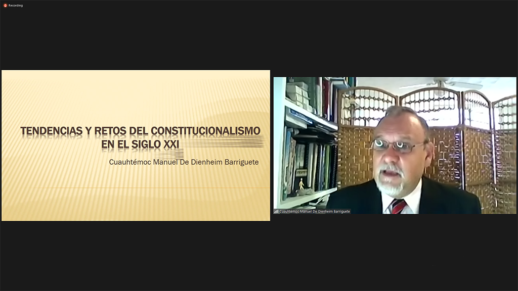 Su clase fue titulada ‘Tendencias y retos del Constitucionalismo en el Siglo XXI’ y dedicó la parte inicial para hablar del contexto del que provienen las tendencias planteadas, puesto que mencionó que la constitución tanto en su sentido material como conjunto de normas jurídicas que organizan a los países (como ley fundamental, suprema o básica), está vinculada a la realidad social.