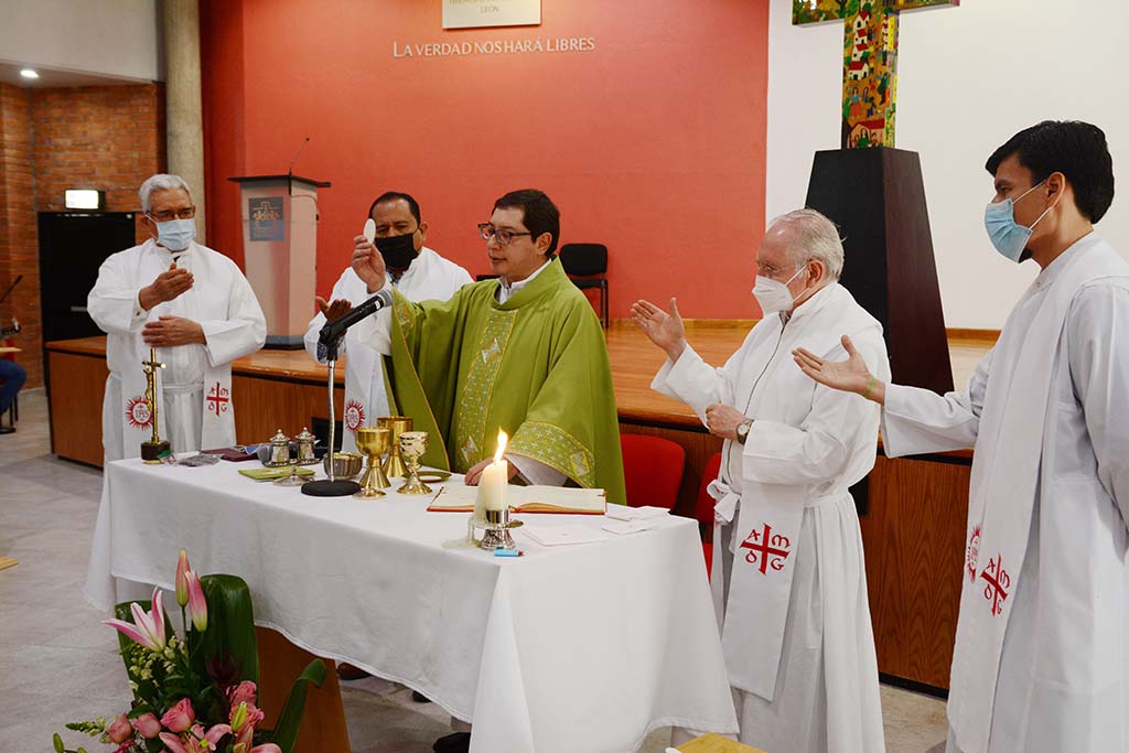 Posterior a la mesa de reflexión, fue concelebrada la Eucaristía por los sacerdotes jesuitas: Aristeo López Larios, José Amado Fernández Ruiz y José Vázquez Álvarez, del Lux; y Luis Alfonso González Valencia y Rafael Ignacio Rodríguez Jiménez, de la Ibero León.