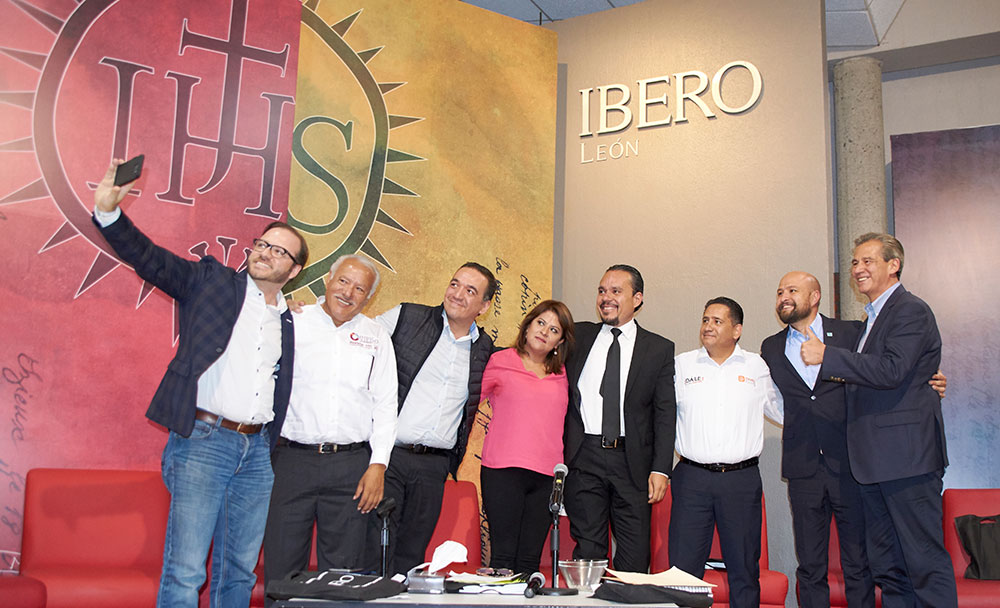 Los siete candidatos a la presidencia municipal de León presentaron ante la comunidad Ibero sus propuestas de gobierno en el marco del Foro Universitario, donde esta institución educativa entregó a cada uno el documento 15 propuestas para León.