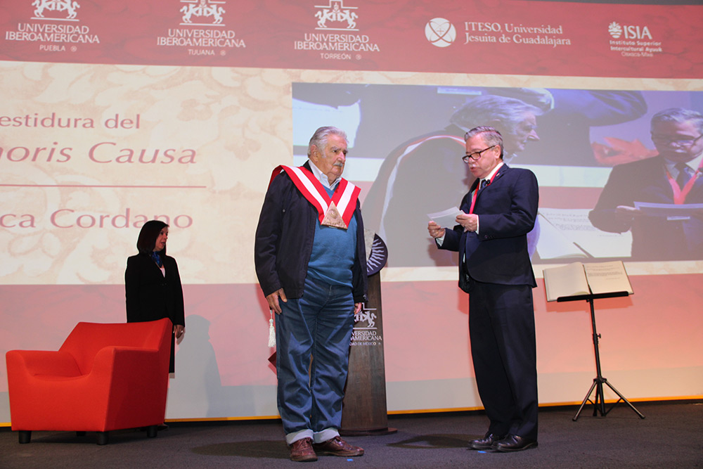 Por su contribución y trabajo realizados como líder en América Latina que aborda la reconciliación, la justicia y la integración de los pueblos y naciones latinoamericanos, así como su compromiso por la paz, la igualdad y la democracia, el Sistema Universitario Jesuita (SUJ) otorgó el Doctorado Honoris Causa al expresidente de Uruguay, José Alberto Mujica Cordano, ‘Pepe’ Mujica, en una ceremonia realizada en la Universidad Iberoamericana Ciudad de México.
