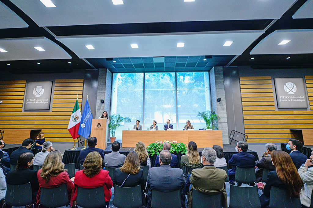 La presentación se realizó en el Instituto Tecnológico y de Estudios Superiores de Occidente (ITESO). Presidieron la ceremonia: Ing. Laura Mendoza Villaseñor, cofundadora y directora de operaciones Unima Bioseguridad Integral; Dra. Carolina Leyva Inzunza, catedrática e investigadora del Centro de Investigación en Ciencia Aplicada y Tecnología Avanzada (CICATA) y ganadora del Premio Ada Byron 2021 Capítulo México; Lic. Gabriela Robles Ramírez, ResDe Servicio Empresarial en AT&T Región Pacífico; Dra. Catalina Morfín López, Directora General Académica del ITESO; y Dr. Alexander Paul Zatyrka Pacheco S.J., rector del ITESO.