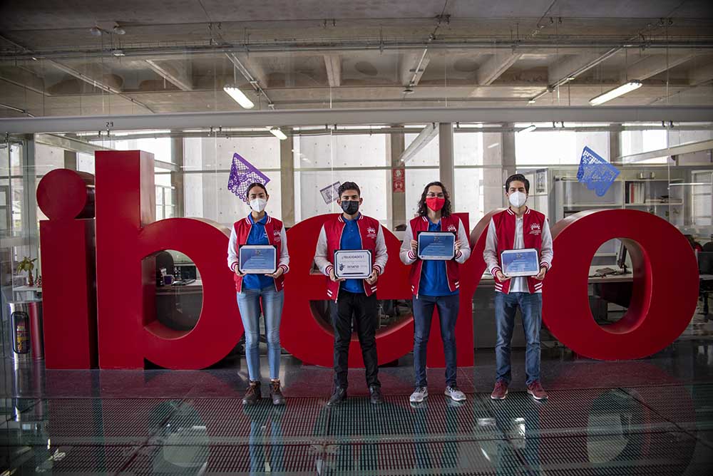 Regina González Ramírez, Luis Ángel Ortiz Cortés, Óscar Ismael Rodríguez Cortés y José de Jesús Gutiérrez Rodríguez, cursan el noveno semestre de la Licenciatura en Ingeniería Mecatrónica en la Ibero León y ganaron en la categoría Cobots del Desafío Volkswagen Guanajuato 2021 y avanzan a la gran final.