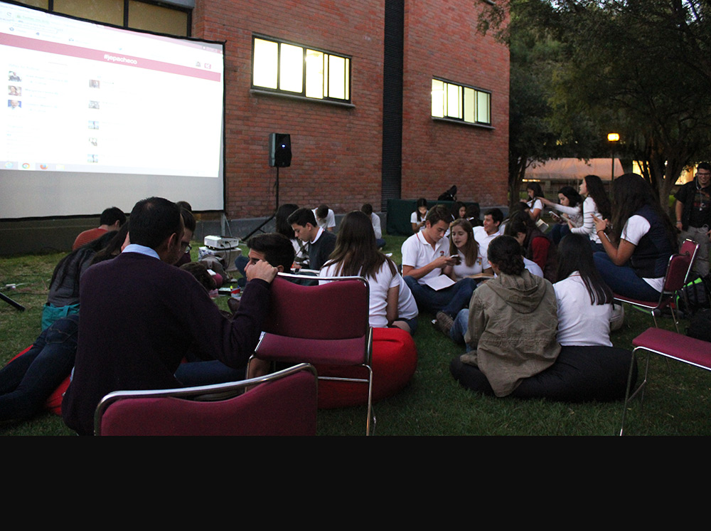 Por una hora, los jardines de lectura de la Biblioteca de la Ibero León fueron el lugar propicio para participar en una actividad que consistió en tuitear mensajes con el hashtag #JEPacheco, retuitearlos al ritmo de los poemas y de la prosa del autor, pero también de la música dirigida por el DJ MTSV, su nombre es Alex y es alumno de Comunicación de la Ibero.