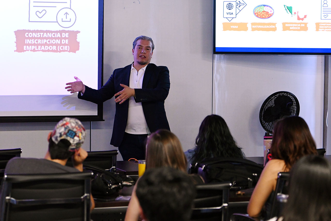 En esta ocasión se contó con la participación de CZR Consulting, empresa leonesa fundada por el Lic. Carlos César Rodríguez García, egresado de la Licenciatura en Comercio Exterior y Aduanas de la Ibero León (generación 2002). CZR Consulting se especializa en brindar consultoría integral, legal y de negocios, ofreciendo servicios como gestión de visas, naturalización, residencia en México, apoyo para la inscripción de empleadores, apostillas y traducciones oficiales, además de capacitación en materia migratoria, entre otros.