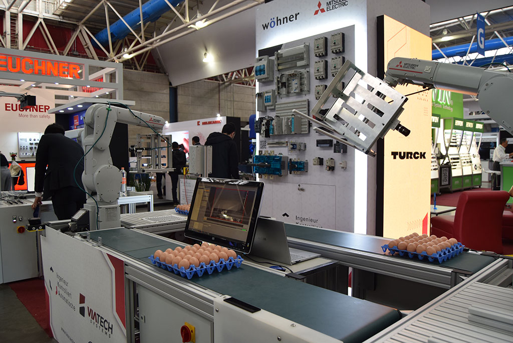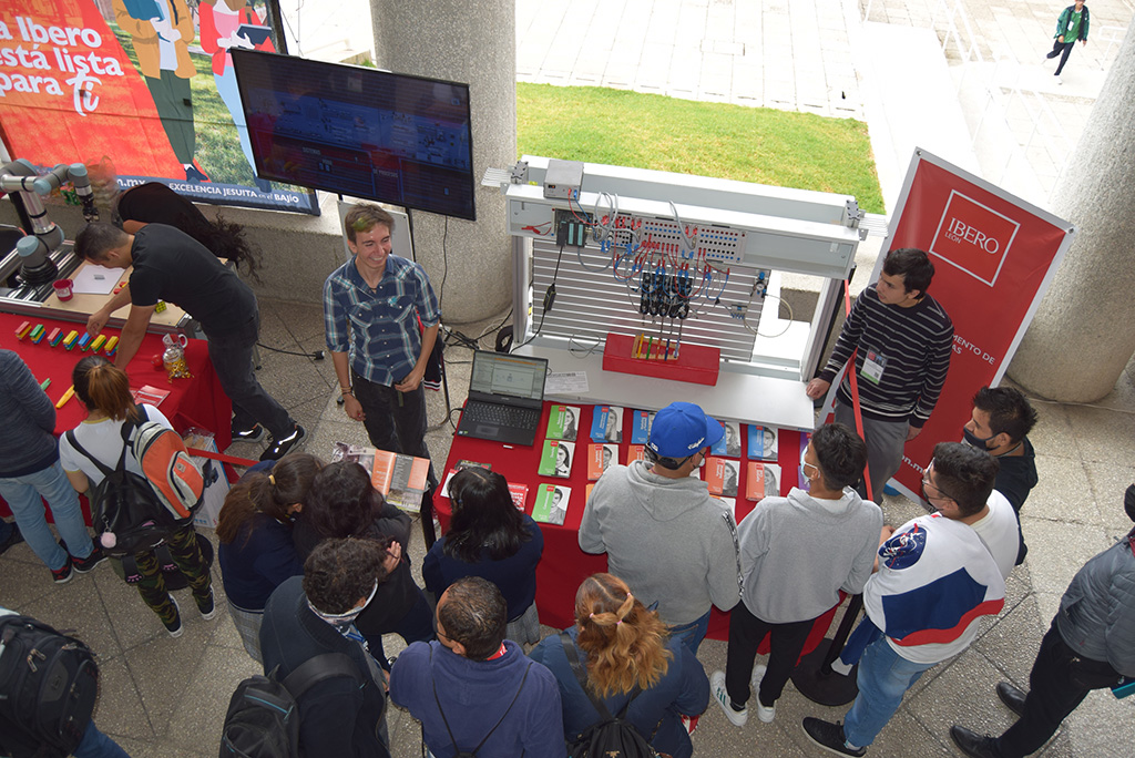 En la Feria expusieron el sistema Bin picking, una aplicación basada, principalmente, en dos tecnologías: la robótica y la visión artificial. Es el proceso por el cual un equipo de VGR (robots guiados por visión artificial) selecciona desde un contenedor o una pila de objetos, una pieza específica, sin importar la distribución dentro la pila o el contenedor, “cuando a las empresas les llegan contenedores con piezas a granel, una cámara 3D toma la foto, identifica la pieza, le manda las coordenadas al robot para que pueda tomarlas y pueda ponerlas en una banda transportadora, en una caja más pequeña, o en un empaque”, explicó José María Moreno Navarro, quien ocupa el cargo de Ingeniero de proyectos del Laboratorio de Industria 4.0 de la Ibero.