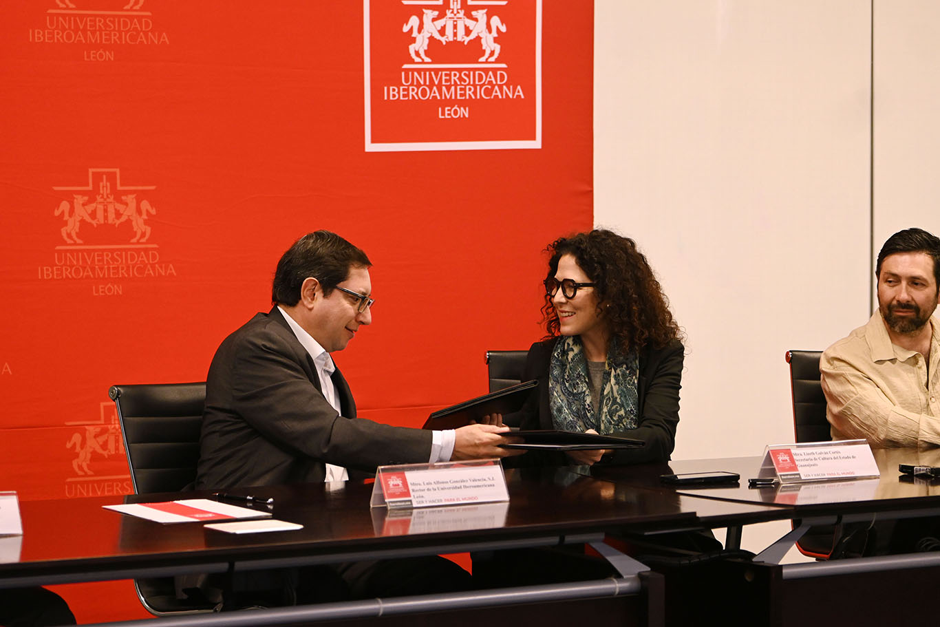La Universidad Iberoamericana León firmó este viernes 28 de noviembre un convenio general de colaboración con la Secretaría de Cultura del Estado de Guanajuato, con el cual ambas instituciones caminarán juntas en proyectos congruentes con la formación integral que reciben las y los estudiantes de esta casa de estudios.