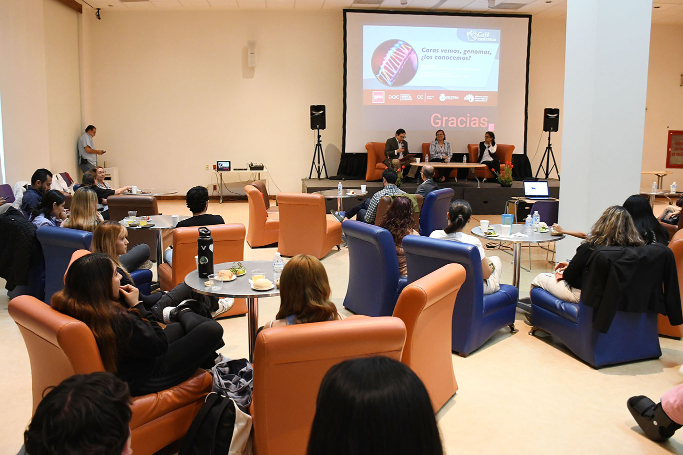 La primera de estas charlas fue titulada ‘Caras vemos, genomas, ¿los conocemos?’ y fue dirigida por la Dra. Lina Riego, investigadora del Instituto Potosino de Investigación Científica y Tecnológica; la Dra. Alicia González Manjarrez, investigadora del Instituto de Fisiología Celular de la UNAM, moderó el evento.