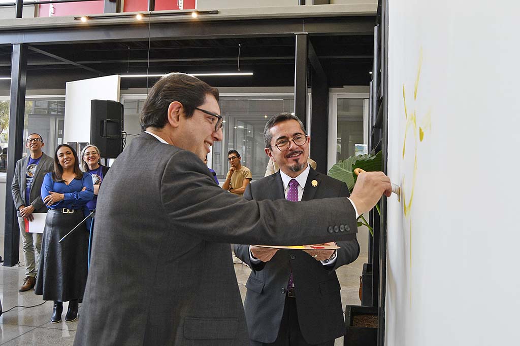 Concluyó su mensaje con el deseo de que el edificio Andrea Pozzo S.J. sea un medio para que la comunidad universitaria pueda expresar mundos más humanos para todos y todas. Junto al padre rector, el Dr. José Osvaldo Chávez Rodríguez, director de Extensión Cultural de la Universidad de Guanajuato, fueron invitados a plasmar un brochazo inaugural de las nuevas instalaciones.