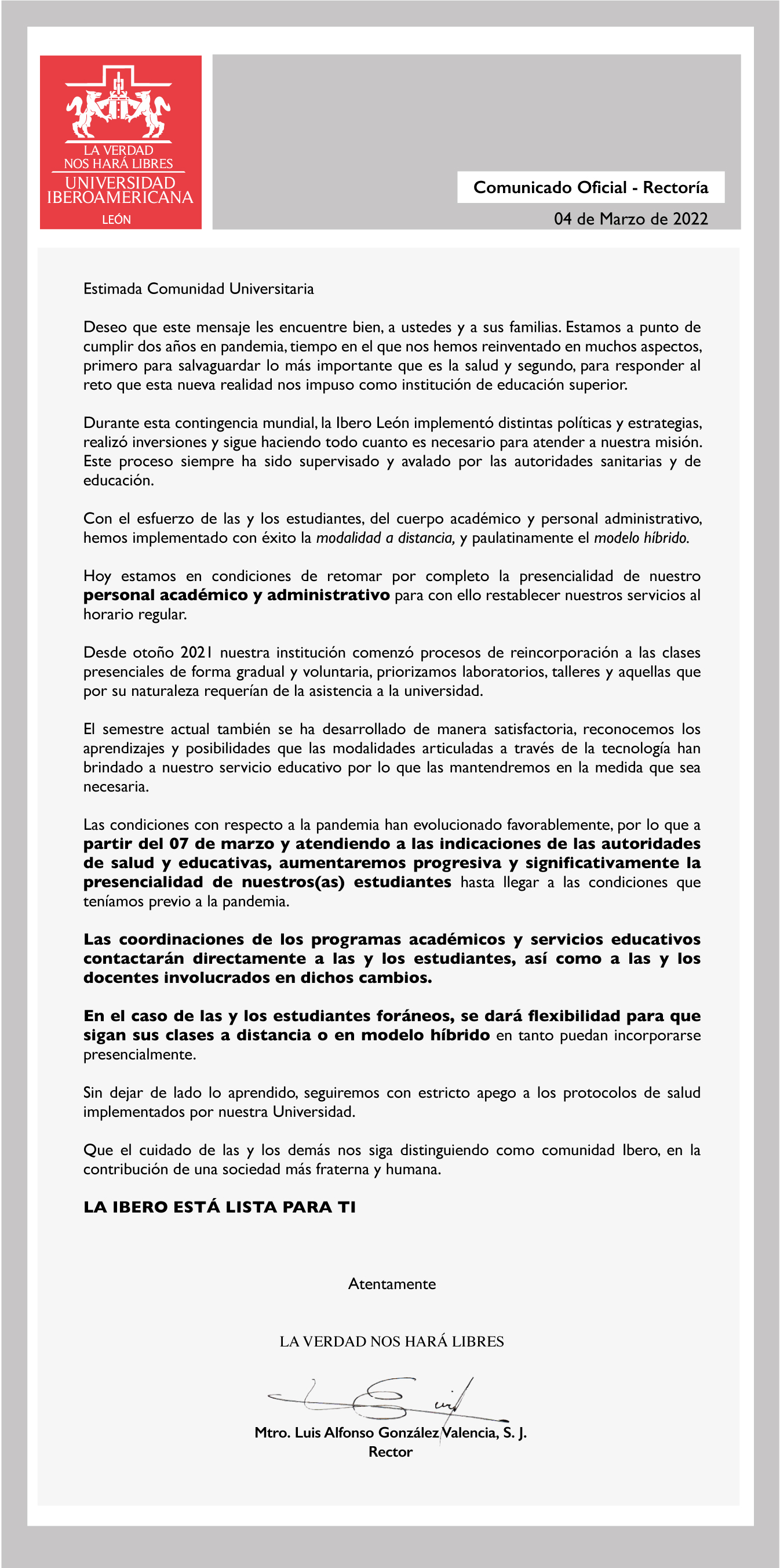 Presencialidad en la Ibero