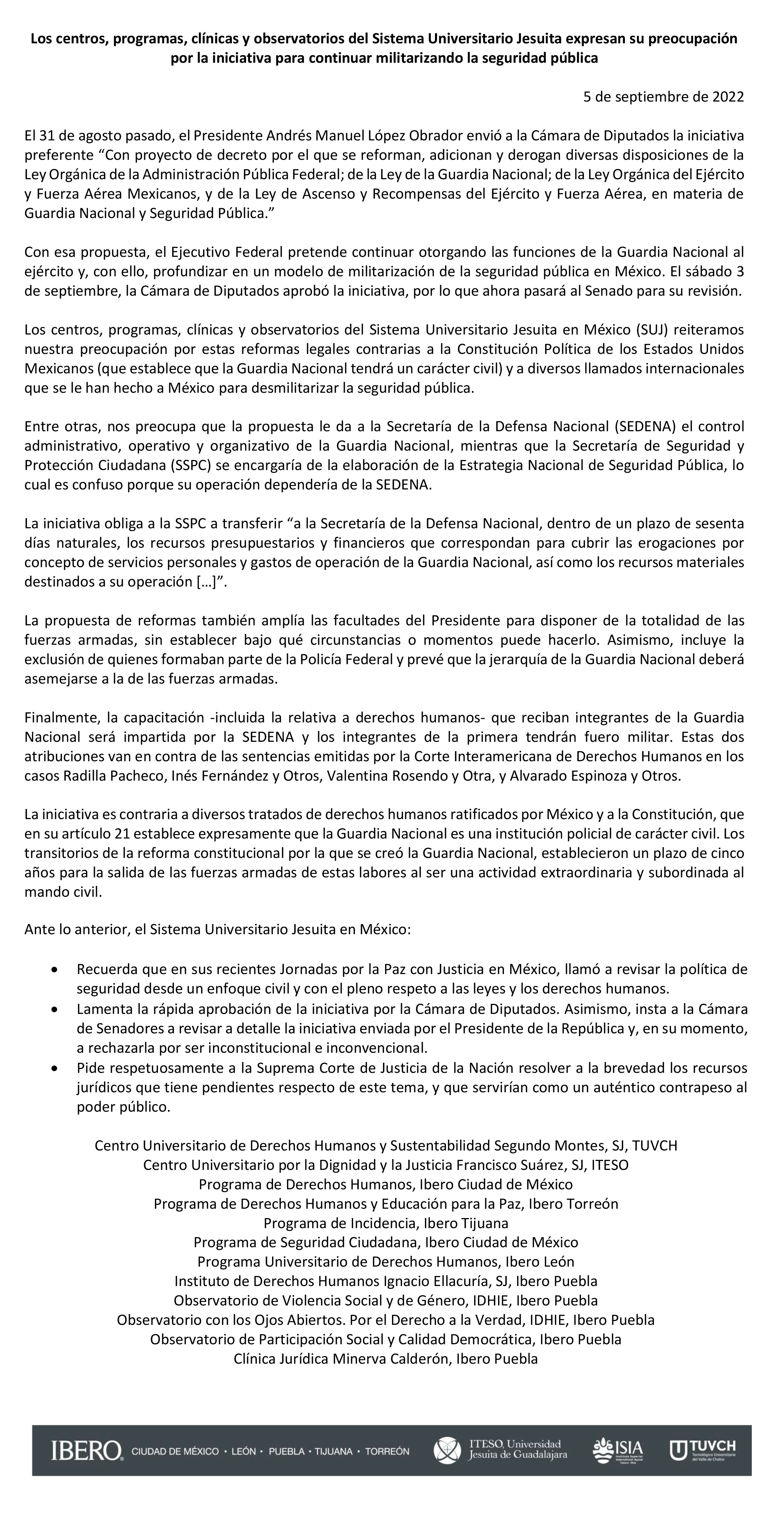 SUJ expresa su preocupación por la militarización de la seguridad pública